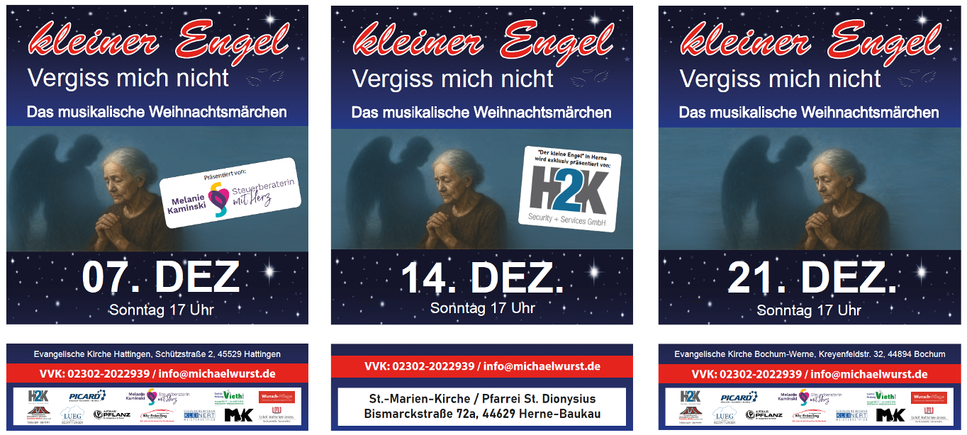 Da der kleine Engel in 2020 und 2021 coronabedingt nicht wie gewohnt in Bochum und Umgebung stattfinden konnte, haben wir für euch einige Weihnachtslieder in einem