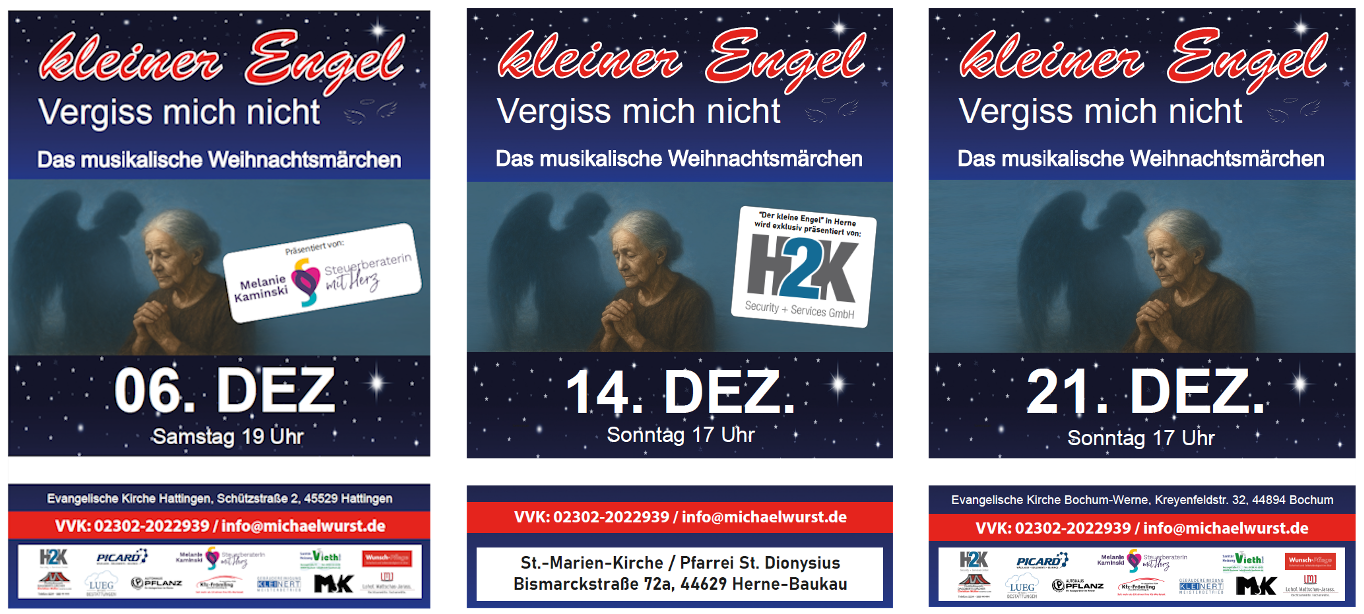 bald ist es wieder so weit: Unsere Weihnachtskonzerte „Der kleine Engel – Vergiss mich nicht“ stehen vor der Tür.
